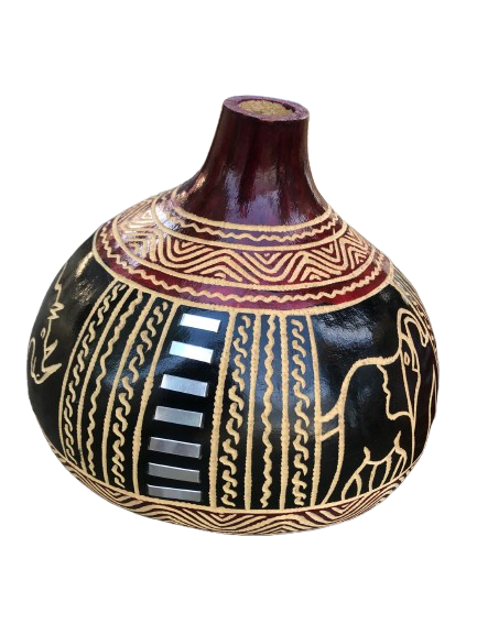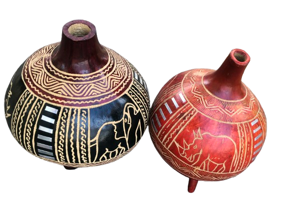 Bring a piece of Africa into your home with this set of 2 decorative calabashes. Showcasing the beauty of African tradition, these colorful pieces are sure to spark conversation and add a lively touch to your space.