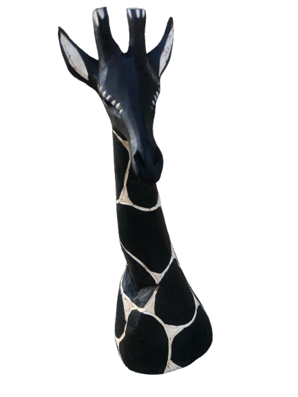 Add a touch of nature to your living space with our 35cm Decorative Giraffe. Handmade from wood, this charming piece captures the beauty of African wildlife. Its flat base allows you to display it on any surface, making it a versatile addition to your home décor