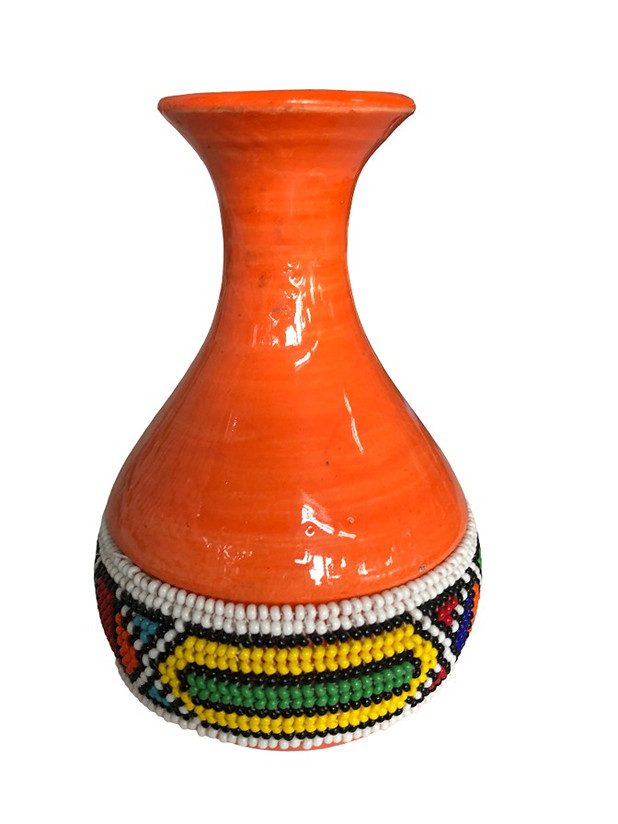 Elevate your home decor with this stunning orange vase, adorned with vibrant beads that celebrate the rich tapestry of South African culture. Its eye-catching design not only adds a pop of colour to any space but also symbolizes diversity and unity, making it a perfect centrepiece for your living room or dining area. Crafted with care, this vase is not just a decorative piece; it’s a statement of multicultural appreciation that will inspire conversations and admiration from guests.