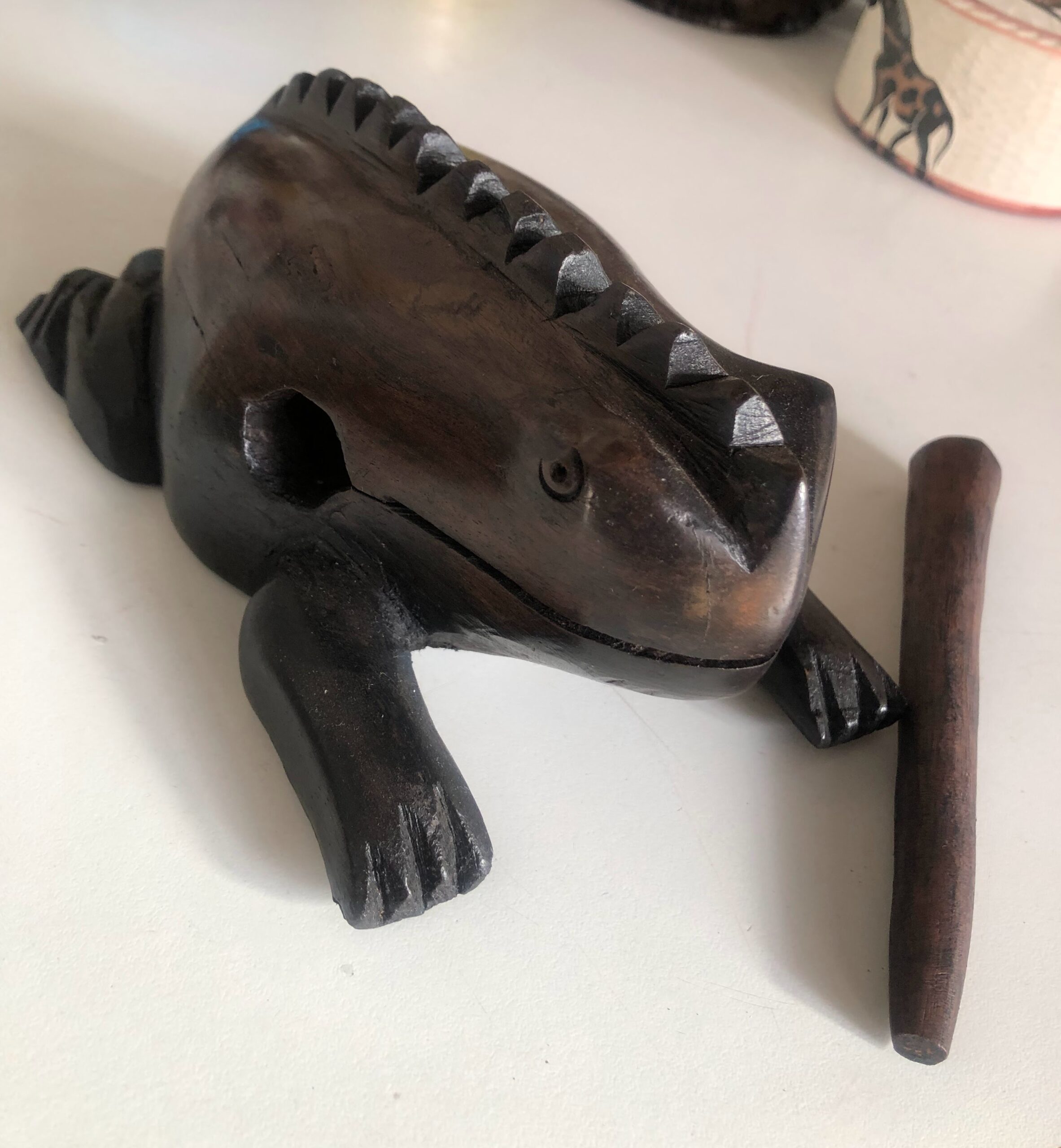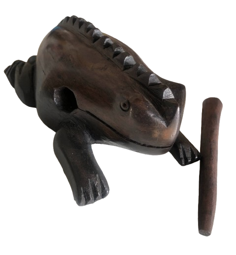 This charming wooden frog with stick is the perfect addition to your home decor if you love music. Made of wood, this decorative frog can also be used to create fun frog sounds with the included stick. Bring a touch of whimsy and music into your space with this delightful piece!