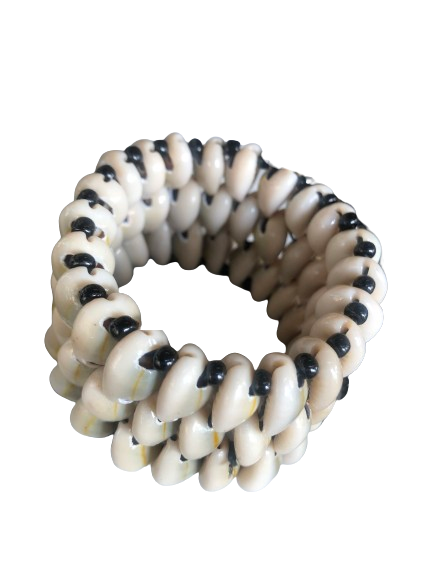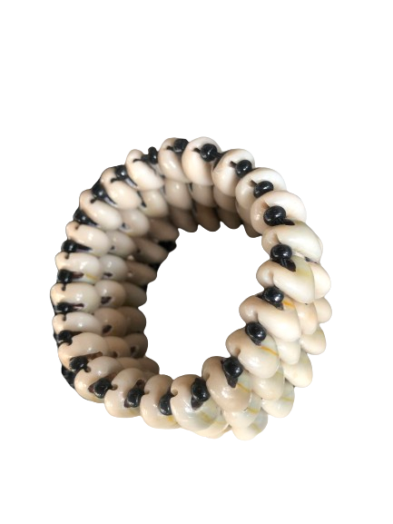 Add a touch of beachy charm to your outfit with our elasticated seashell bangle! Handmade from delicate ivory seashells, this bangle is perfect for effortlessly adding a stylish, summer vibe to your look.